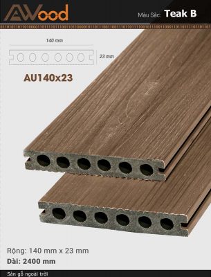 • Sàn gỗ ngoài trời Awood có giá thành đắt nhất so với các loại sàn ngoài trời. Sàn gỗ Awood được tinh chế từ gỗ và nhựa sản xuất trên dây chuyền tiêu chuẩn Nhật Bản. Quá trình sản xuất từ các hạt nhựa PE và bột gỗ ép đùn, phun đúc. Sản phẩm không chứa keo dán, nên không độc hại với người sử dụng. Sàn gỗ Awood dùng để trang trí ngoại nội thất cho nhiều công trình.