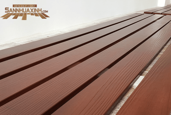 Loại sàn gỗ nhân tạo này được sử dụng nhiều trong các công trình ngoài trời mang tới vẻ đẹp tự nhiên. Ngoài ra, sản phẩm có khả năng chống chịu nước, chịu nóng tốt. Sàn gỗ nhân tạo đang làm mưa làm gió nhờ cách thiết kế kiến trúc thẩm mỹ cao. Loại sàn gỗ xi măng này hiện tại Sàn Xinh không phân phối bởi mang khá nhiều yếu điểm…, quý khách hàng quan tâm hoàn toàn có thể tham khảo tại các trang công ty phân phối khác.