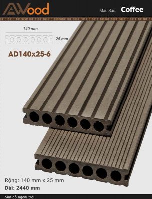 Sàn Gỗ Ngoài Trời AWood – HD140x25-6-coffee 2400mm x 135mm x 25mm 150.000 Nhật Bản