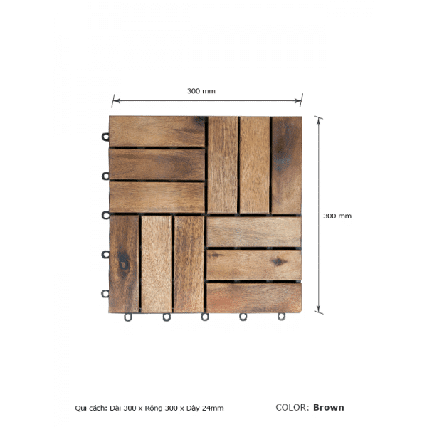 Vỉ Gỗ Tự Nhiên Tràm Bông Vàng Brown 12 Nan 300x300mm